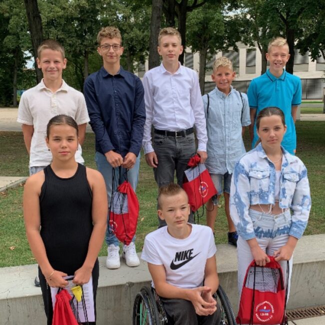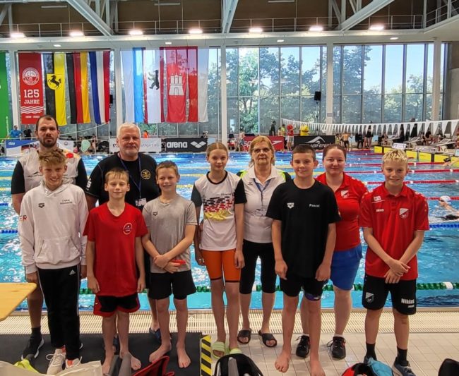 Neue Nachwuchstalente an Sportschule in Potsdam eingeschult Zum neuen Schuljahr 2023/24 konnten acht Schwimmerinnen und ein Schwimmer in die 7. Klasse der Sportschule Potsdam aufgenommen werden. Folgende Sportler*innen freuen sich über die Aufnahme: v.o.l. Harrison Dauck (Potsdamer SV), Anton Kai Zink (Eberswalder SV), Erwin Benke (BSG Stahl Eisenhüttenstadt), Lean Schott (SG Berliner Wasserratten), Mika Wustrau…